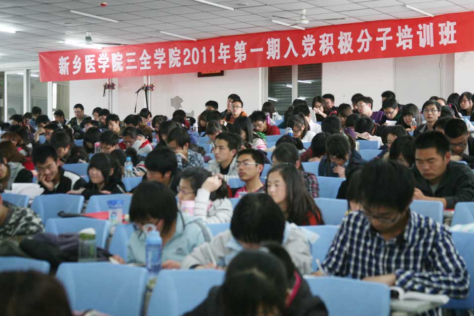本网讯 48日下午,中共新乡医学院第38期暨我院2011年第一期入党积极分子培训班开班典礼在三教楼举行。党委副书记王金文出席并作重要讲话,党务办公室主任李健主持,各分部党总支书记与我院500余名入党积极分子参加开班仪式。