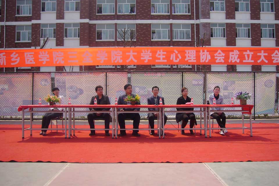 本网讯 3月31日上午,我院大学生心理协会成立大会在西区篮球场隆重举行。学院党委副书记王金文,学务部主任张钢、主任助理陈宏、团委副书记王俊萍出席,亮心沟通中心和心理协会指导老师和近200名心协成员参加。大会由心理协会会长赵德全主持。