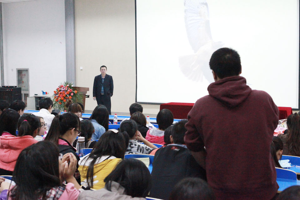 杨俊教授为大家作报告,他首先以马斯洛需求层次理论为点,进而到面,提升到人生幸福,阐述了奋斗目标的重要性。之后他又以自己丰富的人生经历鼓励广大同学,人生应当为自己的梦想所拼搏。最后,杨俊以苹果电脑公司创办人乔布斯的坎坷人生为例,将活动主题“不要受他人意见左右,多倾听自己内心声音及直觉,坚持自己的兴趣与确定的人生目标”阐述得淋漓尽致。在互动环节,杨俊对同学们提出的“如何调整心态”等问题进行了解答,同时也对同学们献上了诚挚的祝福。