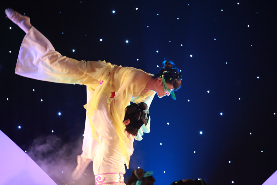 音乐剧《中国蝴蝶》取材于中国家喻户晓的民间故事“梁山伯与祝英台”。全剧共分为春之舞、夏之梦、秋之歌、冬之殇四幕。唱腔优美的“双飞蝶,蝶双飞,沐朝霞,披春晖”拉开了第一幕“春之舞”的序幕。整场音乐剧气势恢宏,剧情跌宕起伏,服饰华美精致,舞台变幻多样;演员动作传神,唱腔饱含深情,给现场观众带来了极大的艺术震撼力。第四幕接近尾声,祝英台纵身跳进梁山伯墓,梁祝化作一对斑斓蝴蝶自墓中飞升而出,伴随着唱腔略带哀婉的“双飞蝶,蝶双飞,沐朝霞,披春晖”,引来漫天蝴蝶在百花丛中翩翩起舞。全场观众享受了一场巨大的视听盛宴。