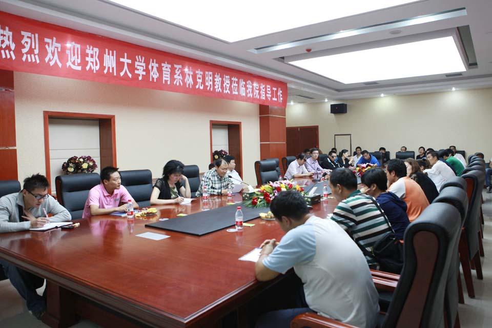 9月27日下午,我院体育部在综合楼二楼会议室开展第二次教育思想及教学工作大讨论,本次讨论特邀郑州大学体育系林克明教授主讲,我院副院长王维勋出席,体育部全体教师参加。