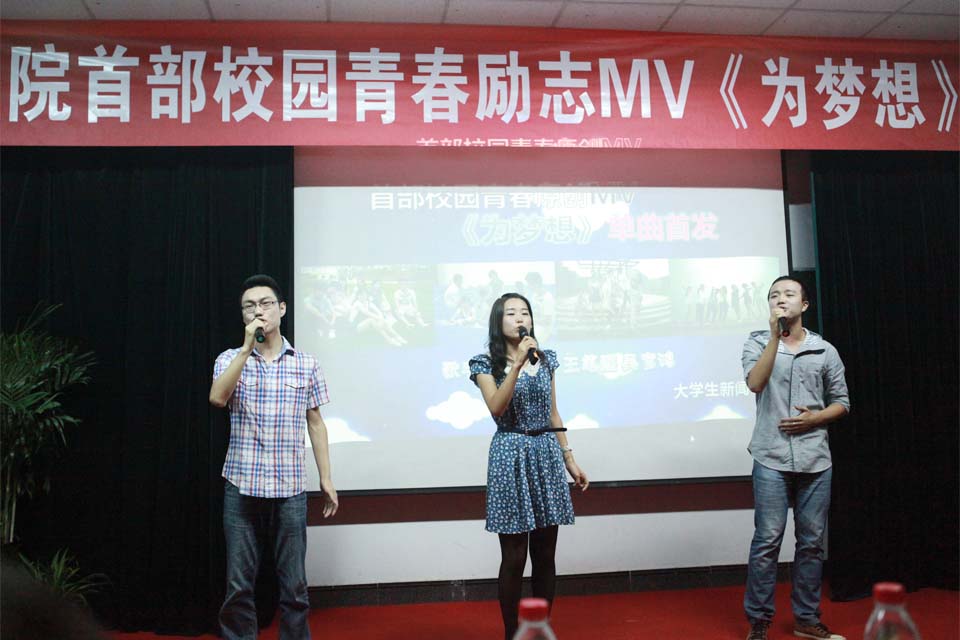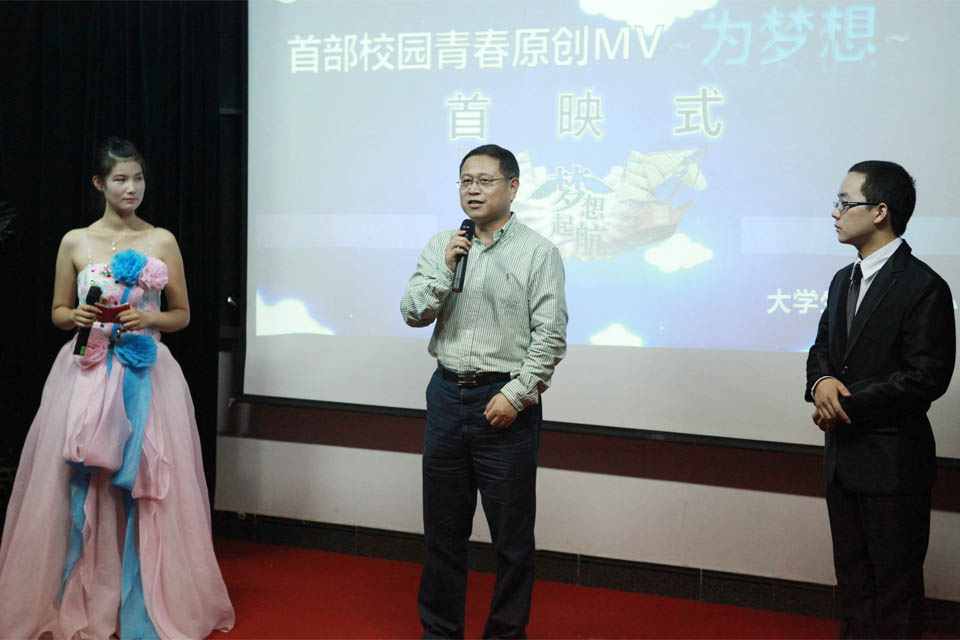 大学校园,青春展现风采;瑰丽乐章,梦想扬帆起航。9月24日晚,正学楼二楼会议室座无虚席,由大学生新闻中心主创的我院首部校园原创青春励志MV《为梦想》首映式隆重举行。我院院长杨捷出席,资讯中心全体工作人员参加,广播台、学生会、社团联合会等学生机构负责人等500余人观看。