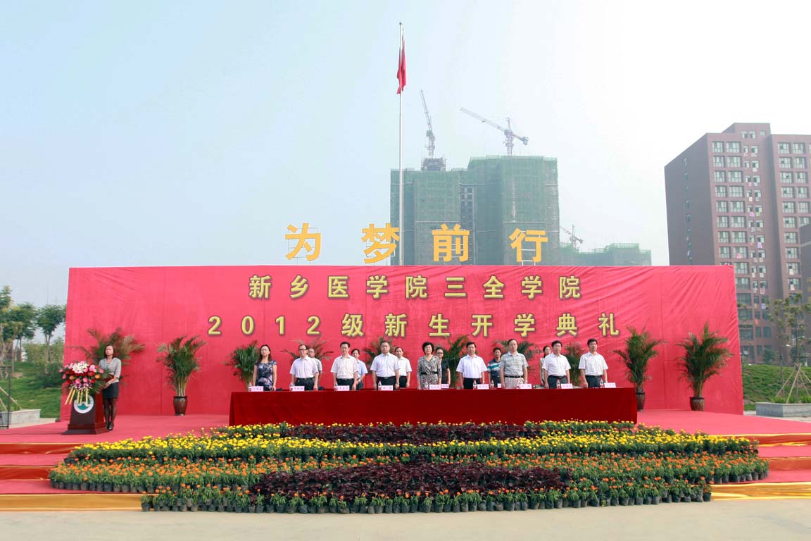在雄壮的国歌声中,开学典礼正式开始。院长杨捷致辞。他首先代表学院董事会和全体教职员工向2012级全体新同学表示诚挚的祝贺和热烈的欢迎!他分别从学院办学成绩、师资力量、办学条件、人才培养、校园文化等方面介绍了学院的基本情况。杨捷在讲话中勉励新生要迈开自己的脚步,朝着梦想奔跑、向着希望追求。要尽快完成从被动学习到主动学习的转变;要学会学习的方法,学会独立思考,敢于质疑权威,树立一种追求真理的科学精神,塑造一个充实完善的自我;要从班级走向学校,从学校走向社会,不断提高自学能力、实践能力、团队合作能力、组织协调能力和社会交往能力;要坚定自己的梦想,并全力以赴,执着追求!