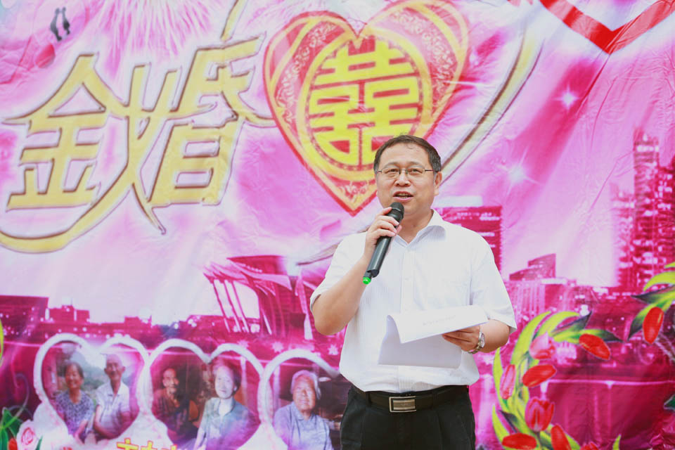 杨捷发表讲话,向参加典礼的6对金婚老人致以衷心的祝福,并对正面村村民的热烈欢迎表示由衷感谢。他说,老人们风风雨雨地艰辛付出与包容,才能够相濡以沫,不离不弃地走下来,为年轻人做了好榜样。他代表我院全体师生祝正面村的父老乡亲万事如意,健康长寿。