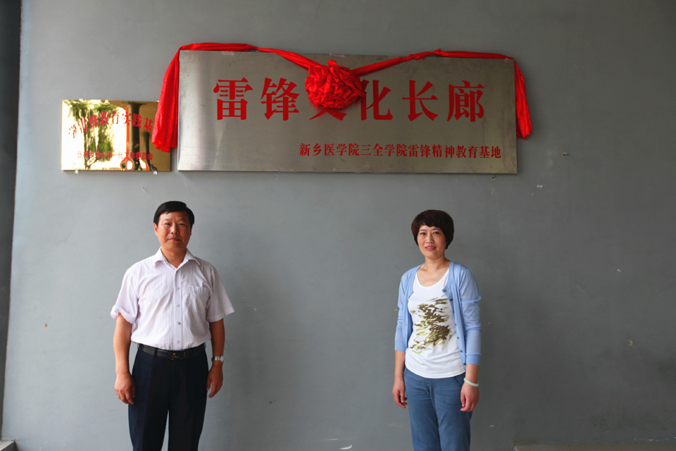 王志凯与肖明杰共同为“新乡医学院三全学院雷锋精神教育基地”揭牌。