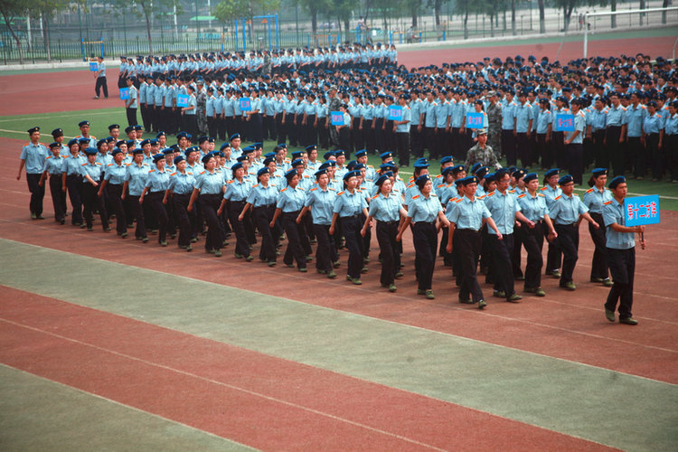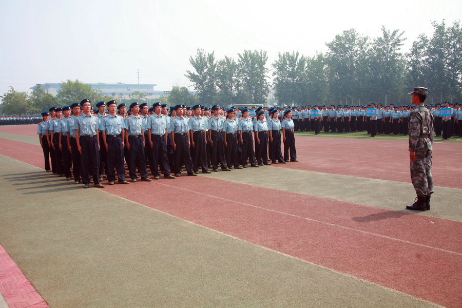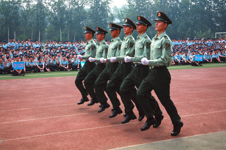 九点半,军训教官及学生集合完毕,奏中华人民共和国国歌。