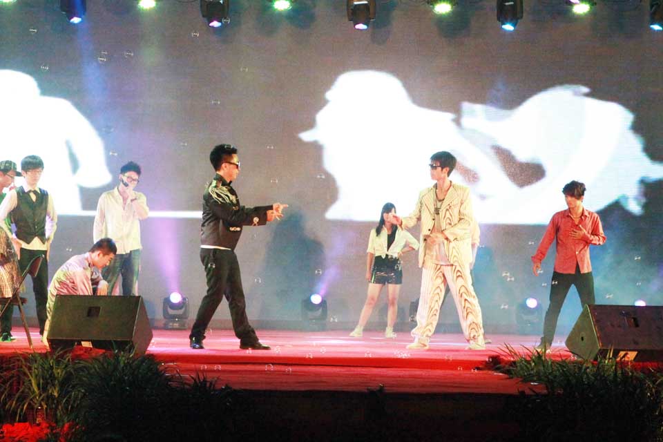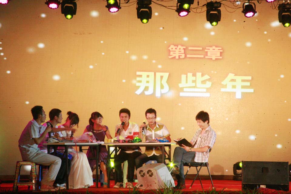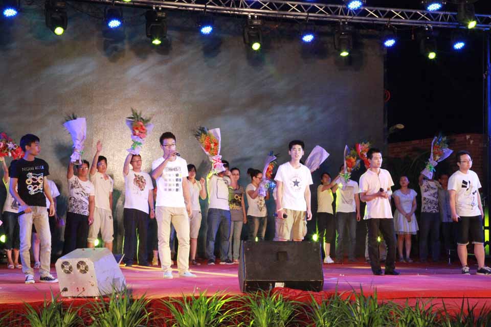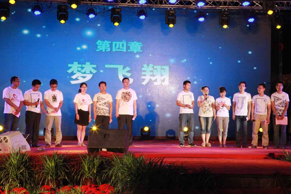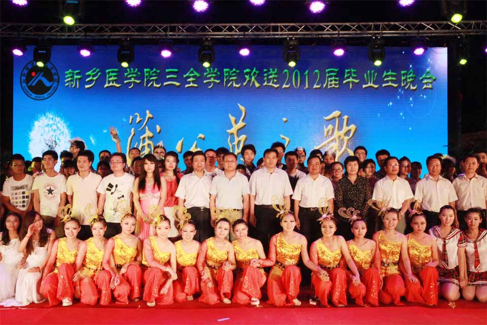 芙蓉花开,清风送爽。 整场晚会以全彩动态LED显示屏为背景,配合新锐的舞台制作效果,为观众带来眼前一亮的视听享受。晚会还设置微博墙全程直播,同学们的观赏感受和对毕业生的祝福即时更新。开始前,毕业生自己录制的小电影,院领导、辅导员老师的温情寄语等视频营造了浓浓的离别之情,带我们进入大学生活的记忆。 晚会分为“正青春、那些年、铭感恩、梦飞翔”四个篇章。开场舞《盛世华章》绝美的舞姿配以绚烂夺目的光影效果,震撼全场;歌曲《青春纪念册》等美妙的旋律勾起了大家对美好往事的回忆;幽默风趣的相声讲述了医学生的多彩生活,歌曲《爱因为在心中》表达出毕业生对母校的感谢和留恋之情。值得一提的是,两位来自美国的留学生也献上一曲《我们是冠军》,表达对毕业生朋友们的美好祝福。在“那些年”篇章中,以情景剧的形式穿插了豫剧、武术、拉丁舞、街舞、歌曲等由毕业生表演的经典节目,如同一个个欢乐跳跃的音符,谱就了和谐校园里一曲动人心弦的华彩乐章。歌曲《父亲》感情真挚,背景配以一张张老师潜心授课、教书育人的图片,毕业生代表亲手为台下的老师戴上花环,场面感人至深,表达了同学们对恩师的尊敬爱戴之情。与会教师代表张合喜、薛松梅分别为毕业生送去了诚挚的祝福和奋勉的话语,深深打动了现场的观众,把晚会推向了高潮。 一样的坚强,不一样的梦想。“梦飞翔”环节中,《狼图腾》希望毕业生们要像雄鹰一样勇敢,像狼一样坚强;由全体毕业生辅导员带来的朗诵《叮咛与嘱咐》表达了他们对即将告别校园的学子最后的祝福和留恋,场下毕业生自发高喊“老师,我爱你”来抒发炙热的情感,台上台下哭声一片,营造了感人的氛围。最后,晚会在同学们深情演绎的歌曲《我的好兄弟》中落下帷幕。 现场始终洋溢着师生情、同学情和无限眷恋之情,掀起了一个又一个高潮;变换的灯光、绚烂的背景、鲜艳的礼花和观众的笑声、掌声、呼喊声,汇聚成广场上爱的海洋。“晚会太感人了,扛不住了!”“催泪季,学长学姐们,走好,加油!!”微博墙上不断更新着同学们的心情寄语。本场晚会主题鲜明、策划精心、演绎精彩,为即将走出校门的毕业生送上了母校的深切关怀和美好祝愿。