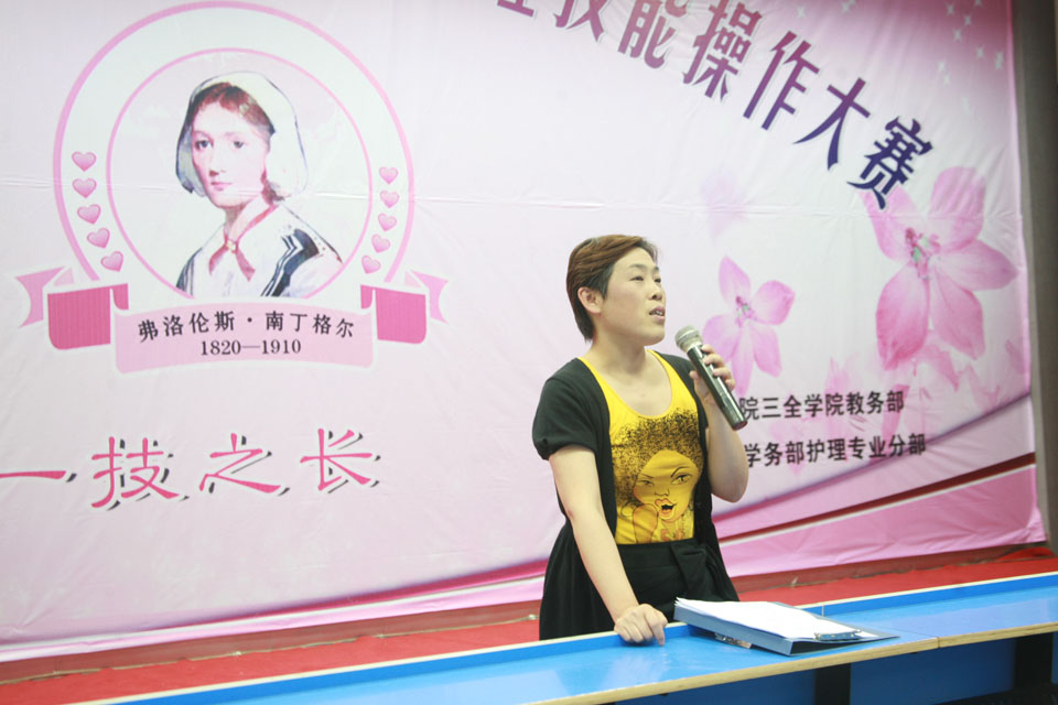 王维勋致辞。他对评委嘉宾到来表示热烈欢迎,他简要介绍我院发展历程与办学理念。王维勋说,护理专业分部是我院一大特色,经过几年发展,在校人数达到2000余人,就业前景良好。职业技能大赛给同学们展现自身内涵、超越自我提供了一个很好的平台。希望通过比赛探索护理职业技能型人才与行业紧密结合的途径,探索进一步推进护理教育质量提高的方式和途径,教师们探索改进教育教学的新的方法和思路,促进学生实践能力提高,进而对护理专业知识水平的要求有进一步认识。他希望同学们根据自己学习掌握的技能,赛出风格,赛出特色,齐心协力,为创造更好的成绩共同努力。