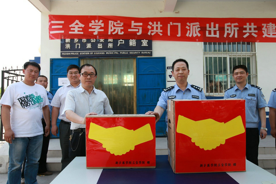本网讯 为加强学院安全管理,建设和谐校园,5月16日下午,我院与新乡市洪门派出所共建平安校园启动仪式在洪门派出所院内举行。我院副院长王维勋,总务部主任邱永建,洪门派出所韩文斋局长、张彦胜大队长及相关负责同志参加了仪式。