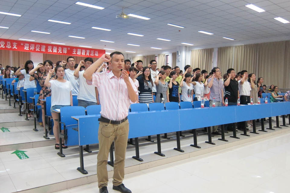 该部全体党员“重温入党誓词”后,李健致辞。他对全体党员、入党积极分子以及学生干部提出了具体要求和殷切希望。他说,在学院评估工作中,要做到“五做好、一发挥”,即在迎评促建工作中分阶段做好宣传员、做好战斗员、做好信息员、做好示范员、做好风采展示员,并积极发挥先锋模范作用。