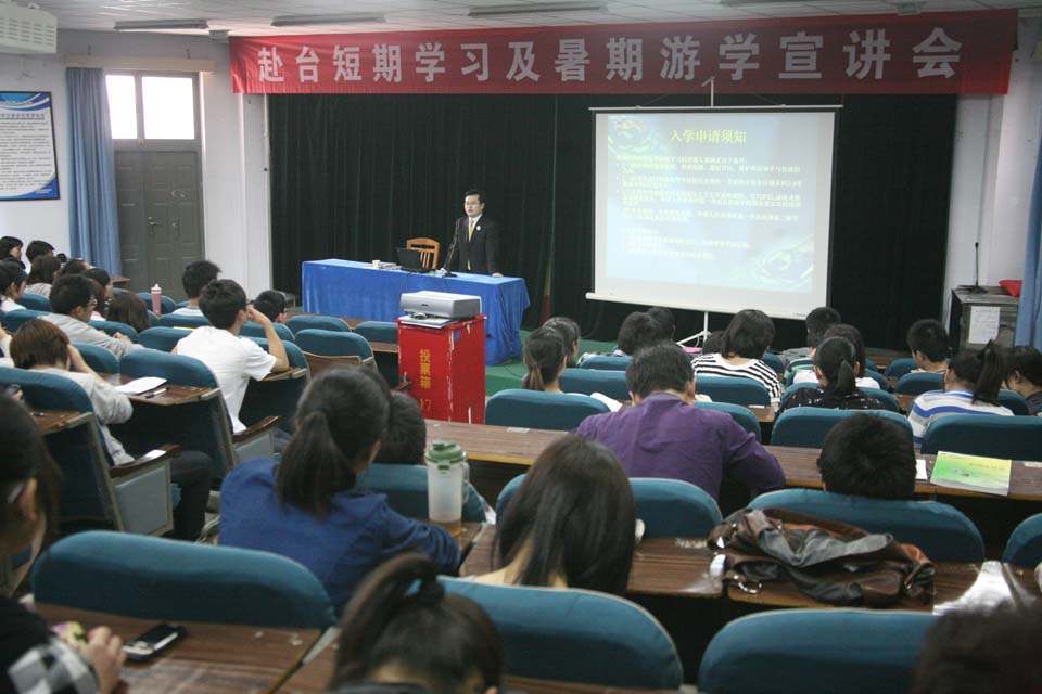 中午,考察团对我院在校生进行赴台短期学习及暑期游学宣讲会,介绍台湾向大陆独立学院开放的医学院校(开放护理、助产、检验、生物技术、影像、药学及生物医学工程等专业)。会后,陕阳忠、王洪兴就同学们的各种问题进行了解答。