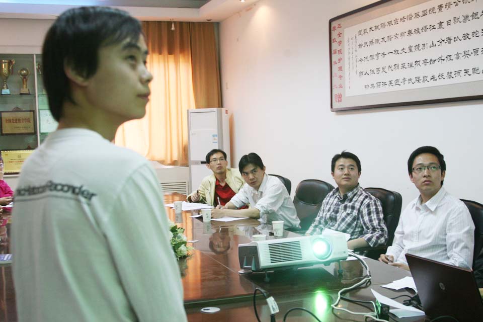 本次大赛共分为四个环节:选手展示网页、选手演讲、老师现场提问和评委打分。选手首先以抽签方式决定自己的演讲顺序,老师现场对选手提出意见和建议,并对每个选手的作品进行详细的点评。张鑫旺指出选手们在作品展示中的一些问题,他强调,选手要有自己的创意,了解并掌握一些网页动态代码。他指出网页图片尽量要小一点,方便登录和查询。其他评委老师还指出,网页色彩设计要与背景相协调。评委老师充分肯定各网站设计内容全面、形式新颖、突出特色,尤其对静态网页技术的运用给予好评。
