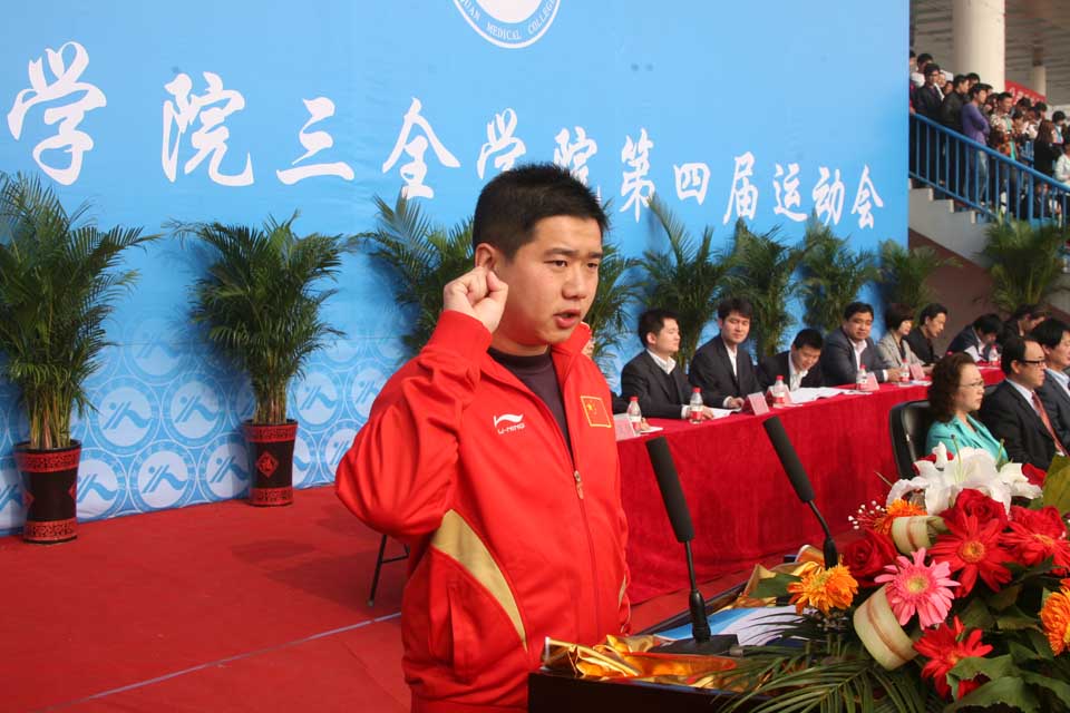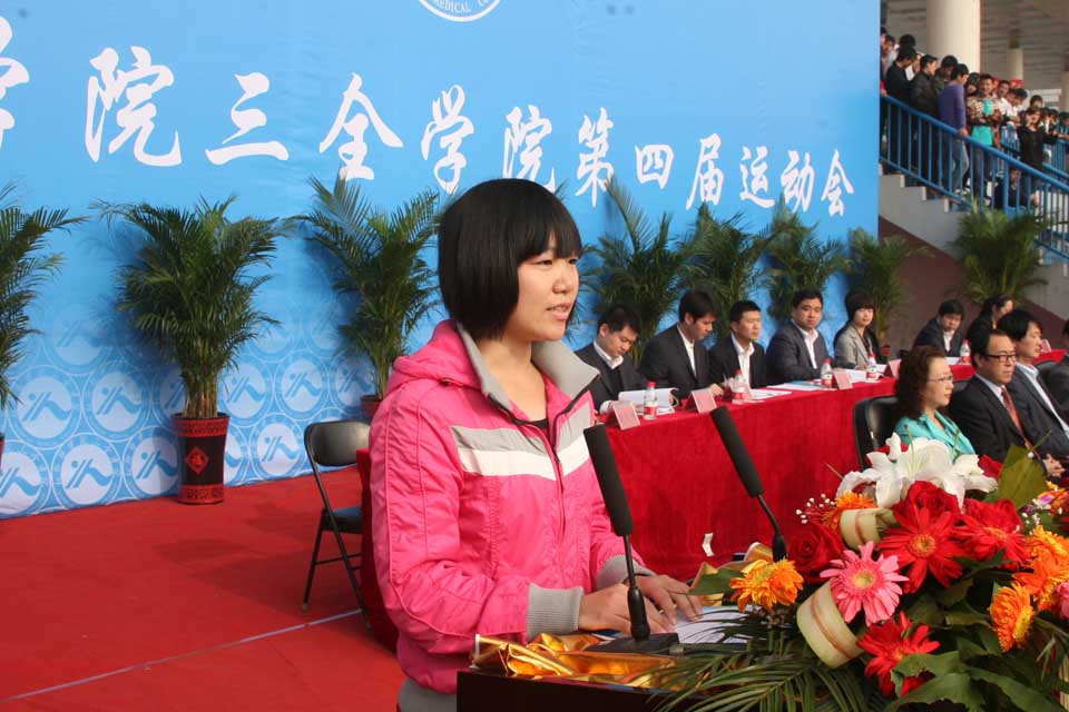 在运动员代表、裁判员代表庄严宣誓后,本届运动会组委会主任、学院院长杨捷宣布我院第四届运动会开幕。
