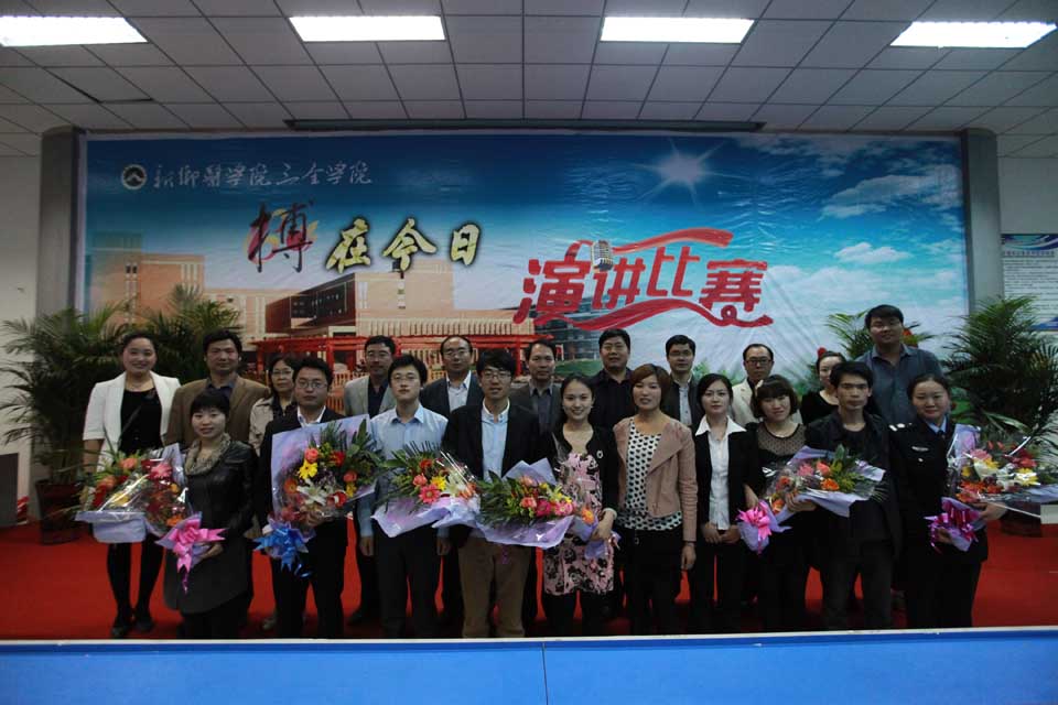 本网讯为营造浓厚的迎评氛围,形成人人关心评估、人人参与评估的良好局面,418日晚,由评建办主办、学务部承办的‘搏’在今日”主题演讲比赛决赛在问学楼T教室隆重举行。此次大赛邀请的评委有:河南师范大学新联学院副书记曹殿朕,新乡医学院生命科学系主任丰慧根,新乡医学院高等医学教育研究中心主任、新乡医学院三全学院评建工作专家指导委员会委员雒保军,新乡医学院药学院副院长白素萍,新乡医学院医学检验系硕士生导师李平法六位老师。我院副院长王维勋,副院长、评建办主任王彦杰出席,学院全体行政管理岗人员及500余名学生参加。