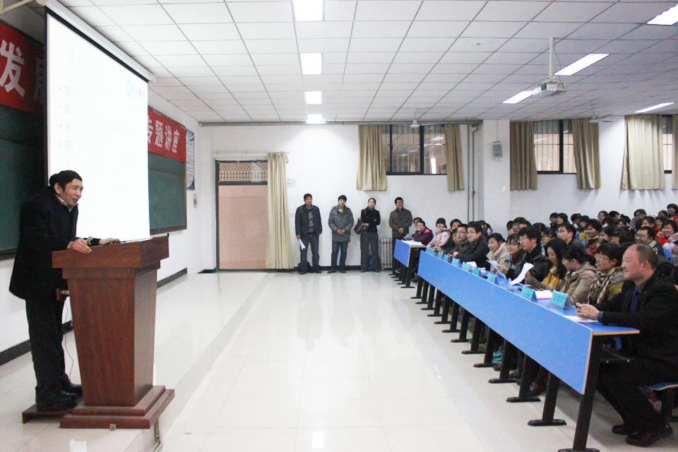 下午,王国胜在问学楼102教室做了题为“医疗行业发展前景展望”的专题讲座,500余名学生聆听。王国胜结合自身坎坷的求学、创业经历,勉励在校大学生珍惜来之不易的求学机会;随后他详细介绍了驼人集团的发展历程、企业愿景及管理体系。他鼓励有志向致力于医药、医疗器械行业的大学生积极开展相关课题,理论联系实际,学以致用,并表示愿意为有志学子提供实验室及研发经费。王国胜还与学生代表就医疗器械的研发等问题做了愉快的交流探讨。