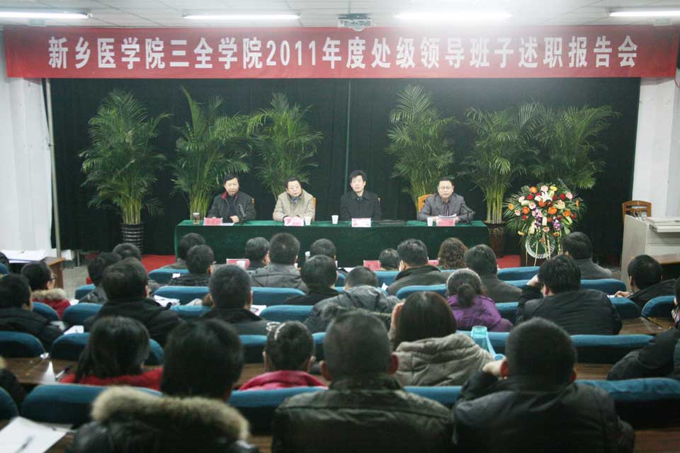 本网讯  15日下午,我院2011年度处级领导班子述职报告会在正学楼大会议室召开。新乡医学院纪委副书记党金锋,新乡医学院党委组织部副部长李庚,院领导王志凯、杨捷、王金文、秦国亮、王维勋、王彦杰、沈雁霞出席会议,全体中层管理干部、二级部门负责人参加会议。会议由院党委书记王志凯主持。