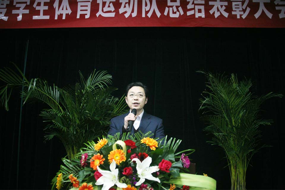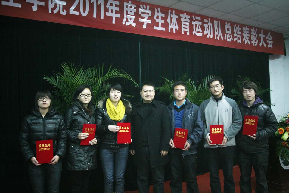 王洪兴宣读《关于表彰2011年度我院优秀学生体育运动队、教练员、运动员的决定》。学院决定,授予武术队、女子排球队、女子篮球队3支学生体育运动队“优秀体育运动队”称号,授予齐琦、凌文杰、蒋广涛等9位同志“优秀教练员”称号,授予朱光举、夏文斌、吴琪、何剑明、胡靖等60位同学“优秀运动员”称号。王金文、王洪兴分别为优秀体育运动队、优秀教练员代表及优秀运动员代表颁奖。优秀教练员代表蒋广涛及优秀运动员代表冯妍分别发言。