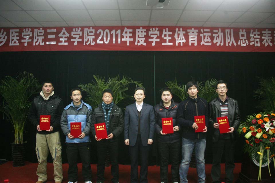 2011年,我院体育健儿不负全院师生的重托,团结奋战,顽强拼搏,获得河南省第九届武术锦标赛本科甲组团体总分第一名、河南省第十届排球锦标赛女子甲组第二名、第十届排球锦标赛精神文明代表队、河南省第十九届篮球锦标赛女子甲组第二名等荣誉,获得新乡医学院足球、男子篮球、女子篮球、女子排球、健美操、武术、网球7个项目团体冠军和男子排球、女子乒乓球2个项目团体亚军,创造了建院八年来的最好成绩,为我院的体育事业添上了浓墨重彩的一笔。