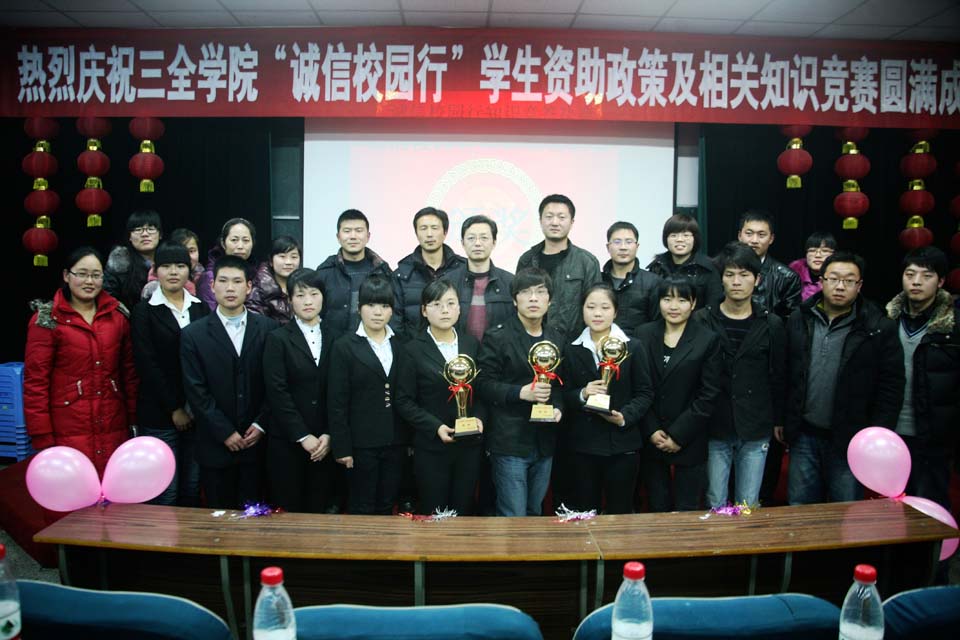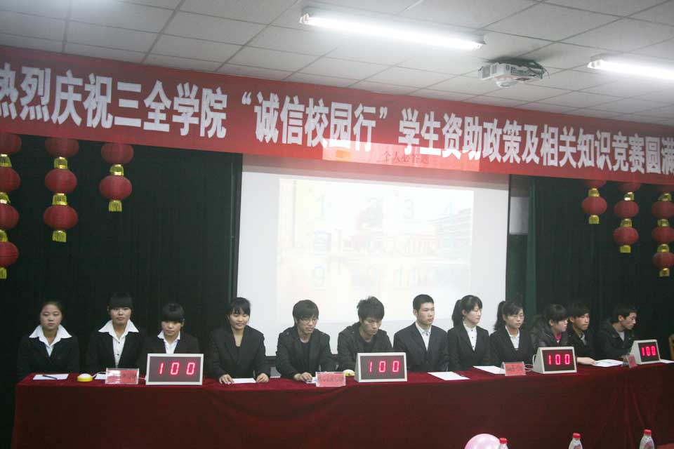 本网讯  1219日晚,“诚信校园行”学生资助政策及相关知识竞答赛决赛在办公楼大会议室举行。党委副书记王金文出席,党务办公室、学务部、就业指导服务中心、资讯中心负责人及各分部师生代表约200人观看比赛。