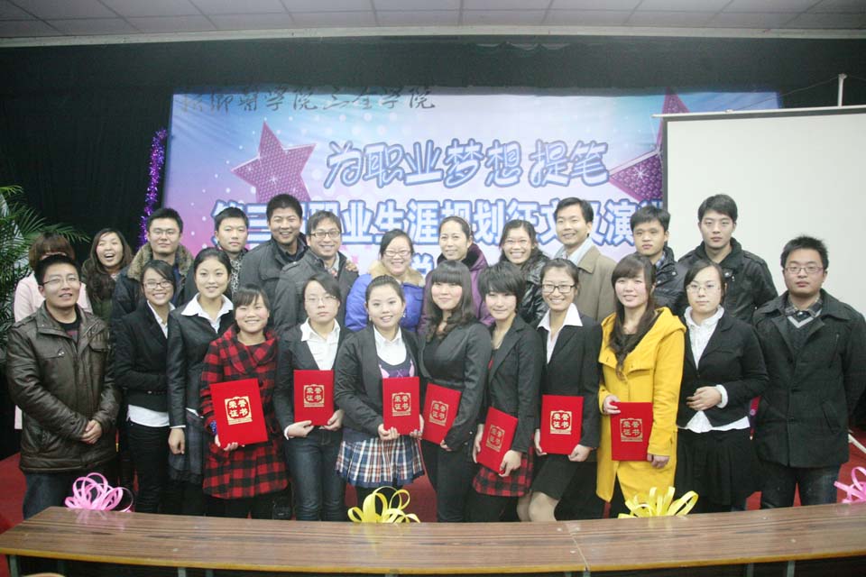 比赛由就业指导服务中心主办,专升本分部承办,各专业管理分部和大学生职业发展协会协办。前期职业规划征文历时近一个月,共有30名同学获奖;后期演讲比赛通过初赛、复赛,最终共有12位选手入围演讲决赛。