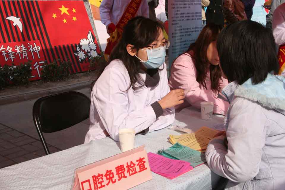 本网讯  311日专升本专业分部在我院篮球场东路开展了以“学习雷锋精神,参与自愿服务,关爱师生、关注眼部及口腔健康”为宗旨的向雷锋同志学习的大型义诊活动。
