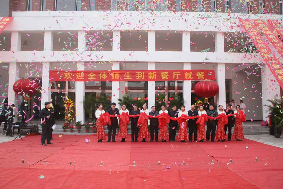 本网讯 2月21日上午,我院新餐厅前彩旗飘扬,鞭炮齐鸣,新餐厅正式剪彩开业。学院党委副书记王金文,副院长秦国亮、王维勋、王彦杰出席剪彩仪式。学务部主任张钢、教务部主任王洪兴和餐厅经营方有关负责人参加。总务部主任邱永建主持开业仪式。