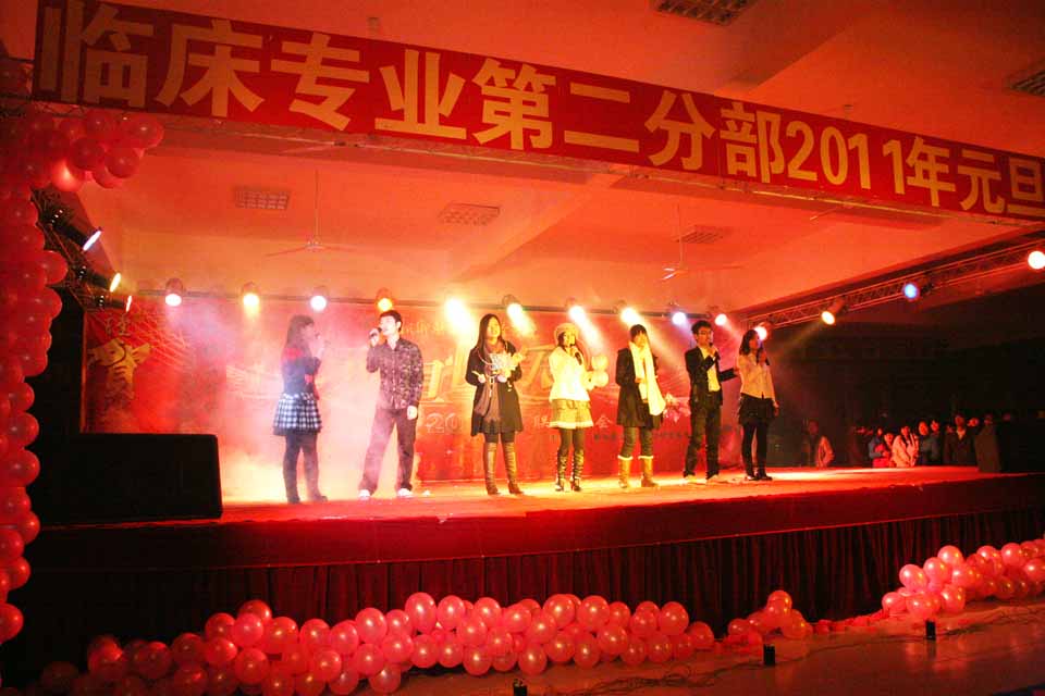 本网讯 12月28日晚,临床二部“分享感动,让爱起航”元旦晚会暨感恩关爱系列活动总结表彰大会在西区新餐厅一楼举行。我院院长杨捷,党委副书记王金文,副院长沈雁霞,张钢、崔向前、樊永兵、李子夏、赵俊强、陈宏等部门主管与在场五百余名师生欢聚一堂,共同观看了本次晚会。