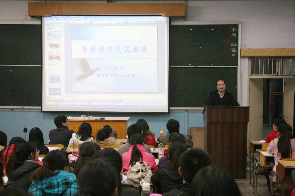 本网讯 11月15日晚,我院副院长王彦杰在二教楼2111大教室,就美国之行的所见所闻以及与美国南加州医科大学、纽约州立大学等医学院校合作办学的考察方面,做了精彩的汇报演讲。外语系主任班亚平和外语系全体教师及广大学生聆听了讲座。