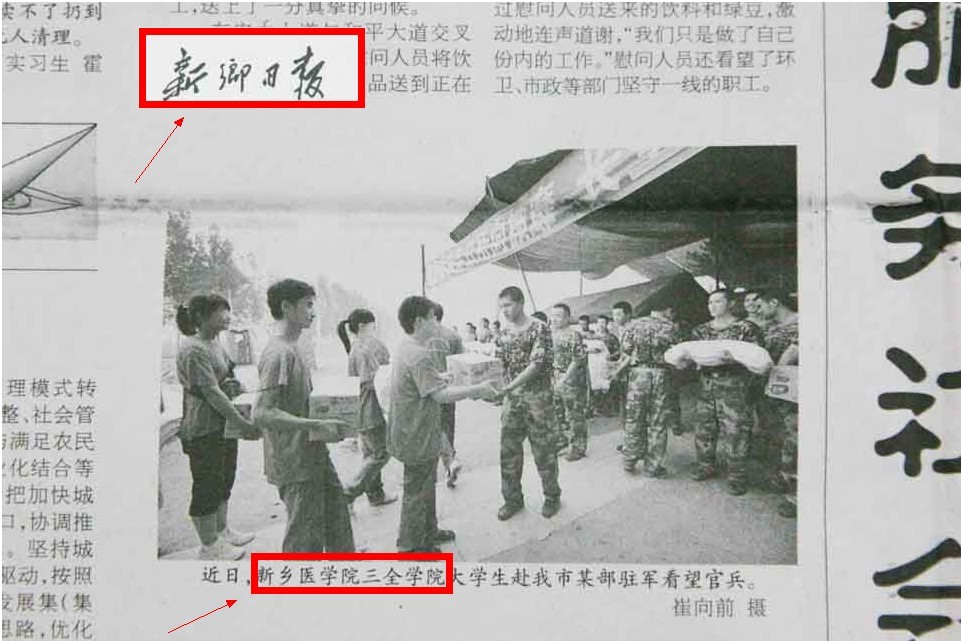 本网讯 7月19日,《新乡日报》图文报道我院师生慰问驻豫某部官兵。