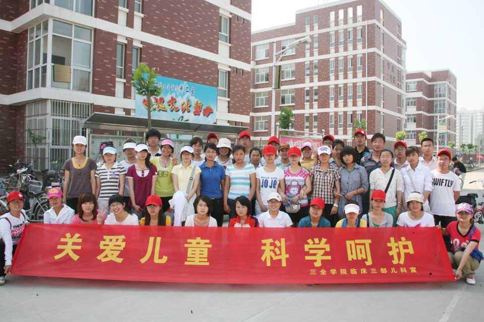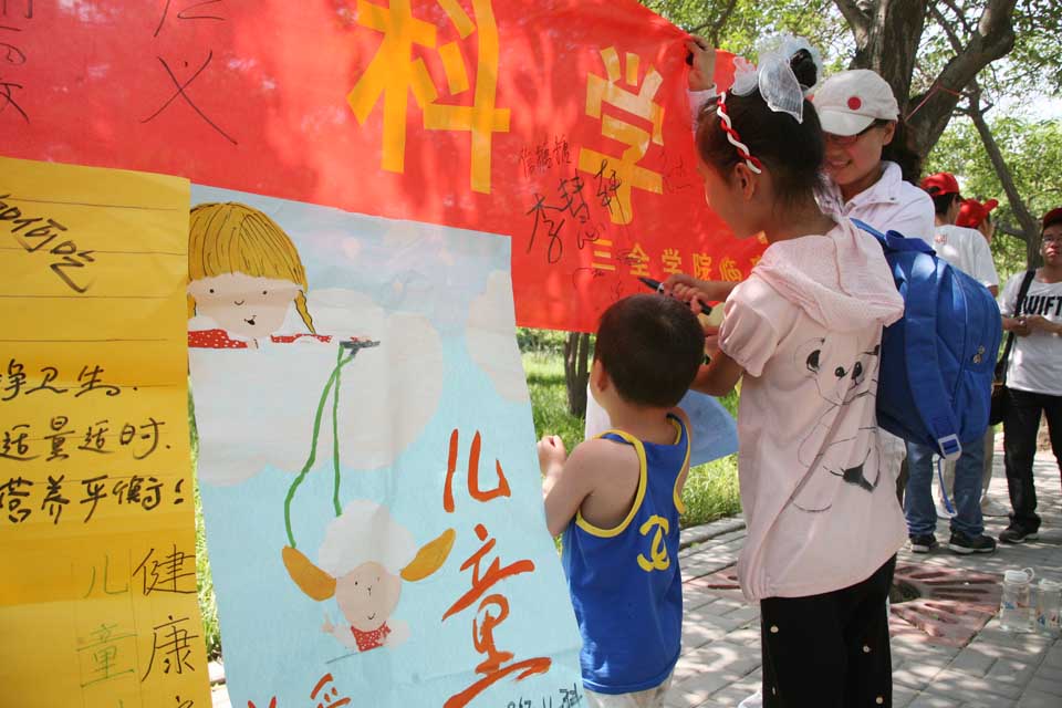 本网讯 为让儿童健康成长、受到更多的关爱,我院学务部临床专业第三分部在“六一”来临之际举办了以“关爱儿童,支起祖国明天的太阳”为主题的爱心知识普及宣传活动。5月30日,来自临床专业第三分部的三十多名志愿者来到人民公园进行爱心宣传。志愿者们通过张贴爱心宣传海报、向市民分发有关健康知识的宣传页、讲解相关疾病的预防等方式号召市民参加“关爱儿童,科学呵护”的爱心签名活动。进行爱心签名的群众络绎不绝,赢得了广泛好评。除了进行校外宣传,本次活动还将在校内进行为期一周的宣传,让更多的同学参与其中。