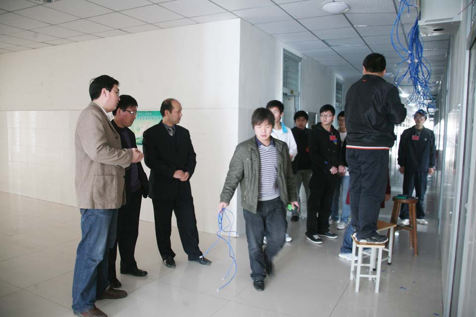 在公寓楼网络建设现场,赵俊强介绍了我院网络建设进展情况。王彦杰向网络技术人员仔细询问工作中遇到的问题,并查看了相关的网络设备。秦国亮深入宿舍仔细查看网络模块等设施的建设情况。最后,王彦杰对我院网络建设工作给予了充分肯定,并强调要确保我院网络建设工作继续顺利有序进行,尽快为学生提供良好的网络服务环境。