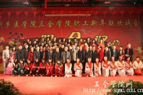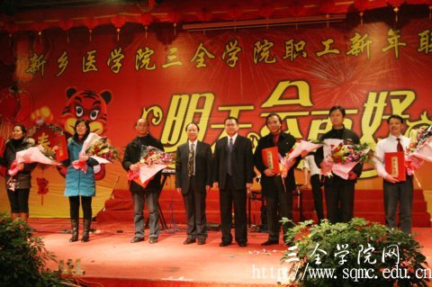 本网讯 我院“明天会更好”职工新年联欢晚会1月22日晚在四季同达生态园隆重举行。新乡医学院党委书记周铁项,新乡医学院三全学院董事长陈逸飞,新乡医学院党委办公室主任张文魁,我院党政领导王志凯、杨捷、王金文、王维勋、王彦杰、沈雁霞、秦国亮出席。我院全体教职工参加晚会。