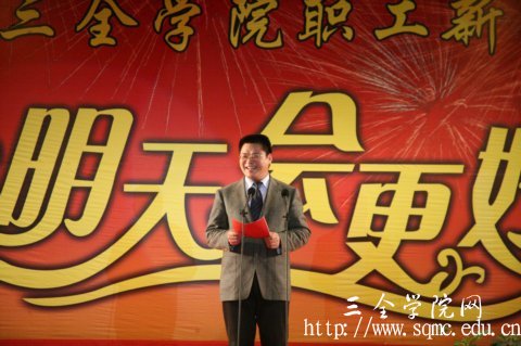 合唱《忠诚》激昂奋进、催人向上;三句半《虎年祝福》热烈喜庆、生动幽默,为大家送上虎年的祝福;快板《新年新词话三全》幽默风趣,妙趣横生;小品《一粒高》讥讽时弊、引人捧腹;配乐诗朗诵《腾飞,三全》激昂澎湃,表达出全体教职工对学院的赞美和感谢之情;舞台走秀、情景剧、街舞等精彩节目博得了现场观众的阵阵喝彩。晚会还颁发了就业工作优秀奖,双优奖,学院建设、管理、教学奖,暑期社会实践奖,以此表达学院对优秀工作者的鼓励。全体院领导的合唱《明天会更好》将晚会欢乐的气氛推向高潮。