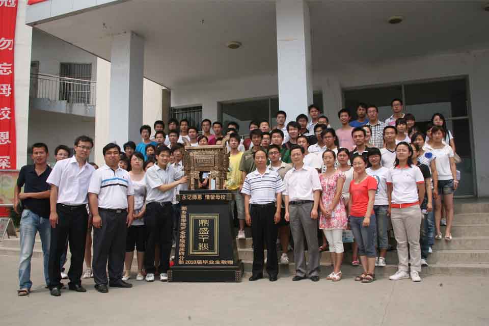 625日上午,我院在办公楼前隆重举行临床专业第四分部2010届毕业生捐赠“鼎盛千秋”宝鼎仪式。学院党委书记王志凯、党委副书记王金文、学务部主任张钢出席捐赠仪式,临床专业第四分部全体辅导员和毕业生代表共200余人参加。