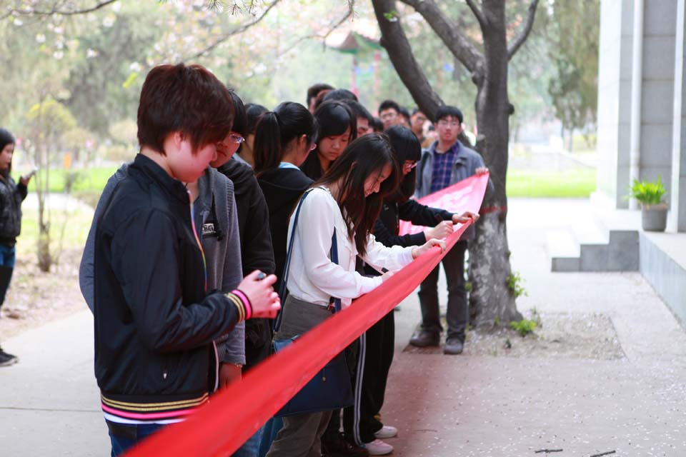 活动开始,由团委老师与学生代表为英雄烈士敬献花圈及鲜花。随后全体默哀一分钟,缅怀革命的精神。接着,由张新和学生代表分别发言,代表全院学生向革命烈士致以崇高的敬意。全体同学向革命烈士庄严宣誓,势将继承革命精神,志愿为祖国贡献自己的青春。