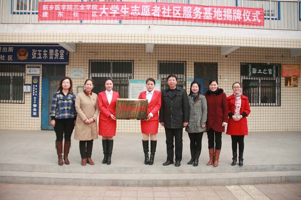 为推动学院精神文明建设,促进学生良好行为习惯的养成,弘扬雷锋精神,管理学院和护理学院深入推动大学生志愿服务活动,在新乡市老龄委、新乡市红十字会的大力协助与支持下,携手新乡建东社区共同建立了“大学生志愿者社区服务基地”。