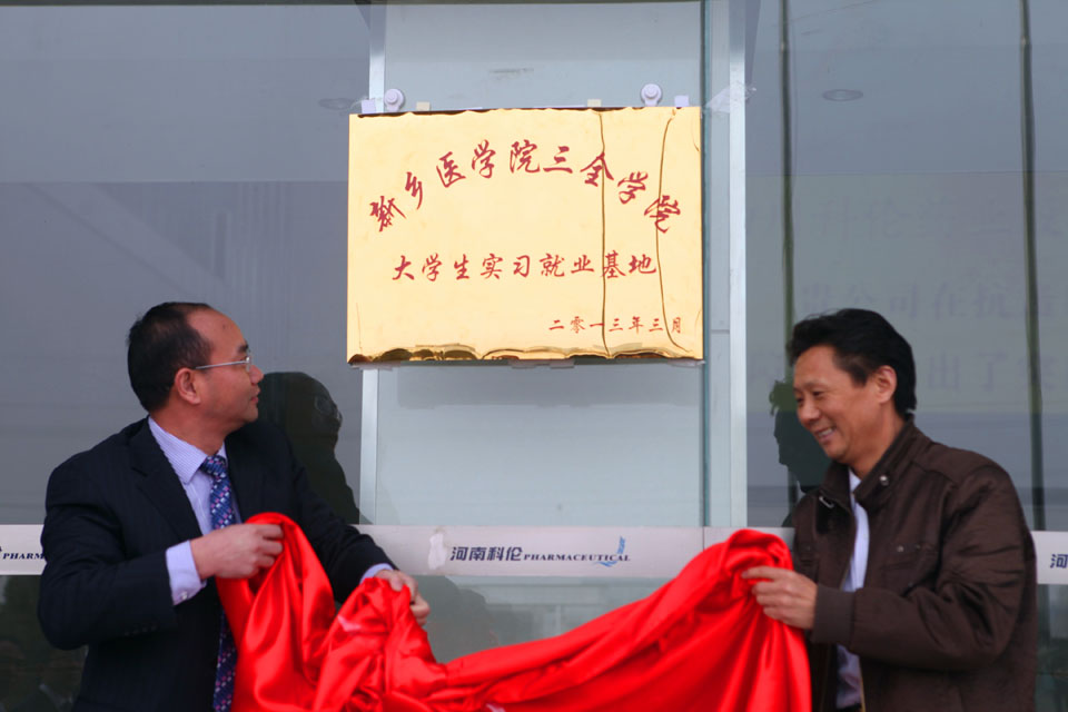 最后,闫福林和吴中华共同为实习就业基地揭牌,宣告河南科伦药业集团“新乡医学院三全学院大学生实习就业基地”正式成立。