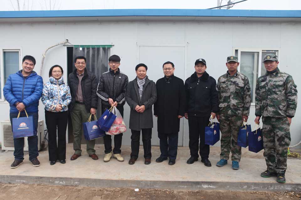 接着,学院领导一行又驱车来到学校新校区。在新区建设指挥部现场,院领导向在岗值班的员工及其家属致以节日的祝福。在听取值班人员安全保卫情况介绍后,党委书记王志凯反复叮嘱项目负责人在新一年新校区建设工作中一定要时刻绷紧安全这根弦,确保工程质量,同时,向在学院新校区建设中付出辛勤劳动的全体人员表示衷心感谢和深切慰问。最后,工会负责同志向值班人员送去了水饺等过年物品,将一份温暖和关怀带到了新校区。