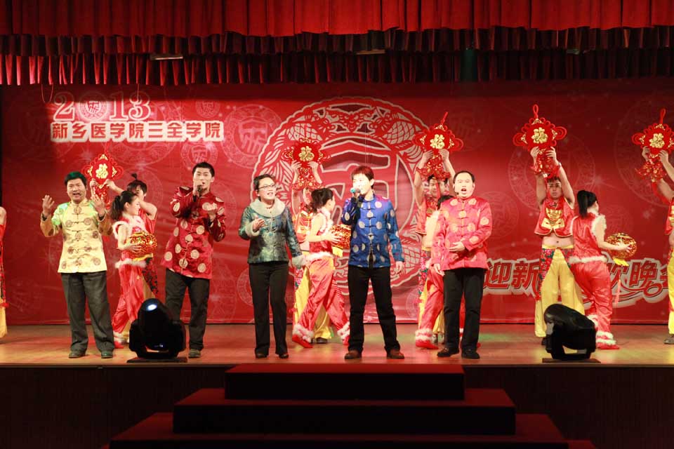 本网讯 1月18日下午,以“我爱我家”为主题的新乡医学院三全学院2013迎新春联欢晚会在馨飨苑文化活动中心隆重举行。学院领导王志凯、王金文、秦国亮、王彦杰、沈雁霞与我院学术委员会委员、评建专家、教学督导专家出席,教职工与学生代表300余人参加。