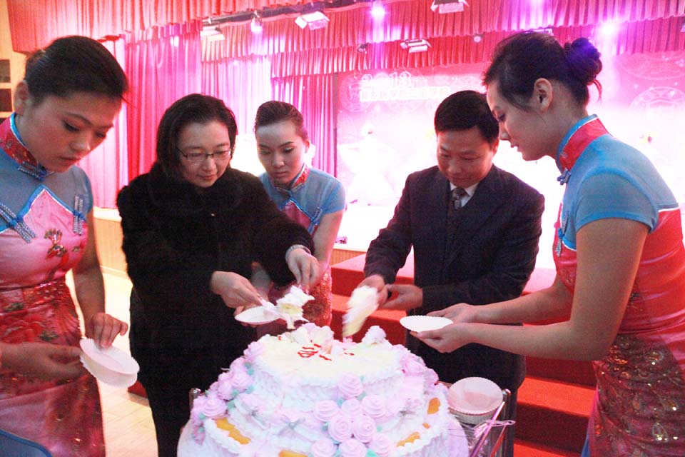 院领导王志凯、沈雁霞在晚会结束前将象征着“家与团圆”的大蛋糕推上舞台,掀起新的高潮。