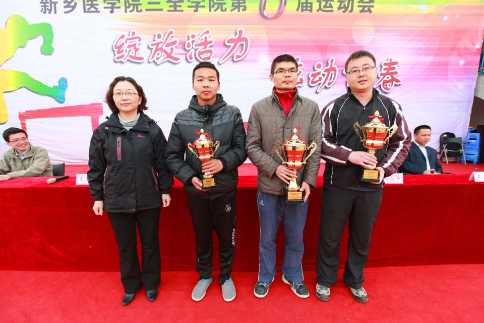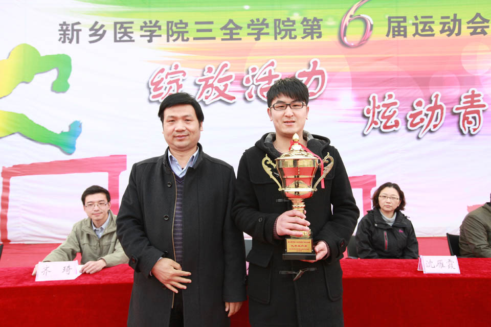 体育运动委员会办公室主任齐琦宣布各项比赛成绩。医学技术学院、临床学院、基础医学院分获学生组男女团体总分前三名,思想政治理论课教学部工会、机关第二工会、机关第三工会分获教职工组团体总分前三名,护理学院荣获学生组优秀组织奖。院领导和部门主管为获奖集体颁奖。