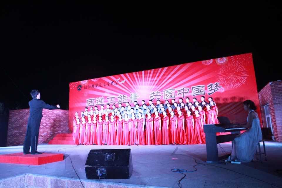 为深入学习贯彻党的十八大精神,引导广大学生实现国家富强、民族复兴、人民幸福的伟大“中国梦”。4月26日晚,“团递正能量 共圆中国梦”第三届大学生合唱比赛在露天文化广场举行。学校党委副书记王金文,副院长沈雁霞,学务部主任樊永兵、纪检监察与审计部主任马引莲、教务部主任助理李一光及各院系党总支书记出席了此次活动。