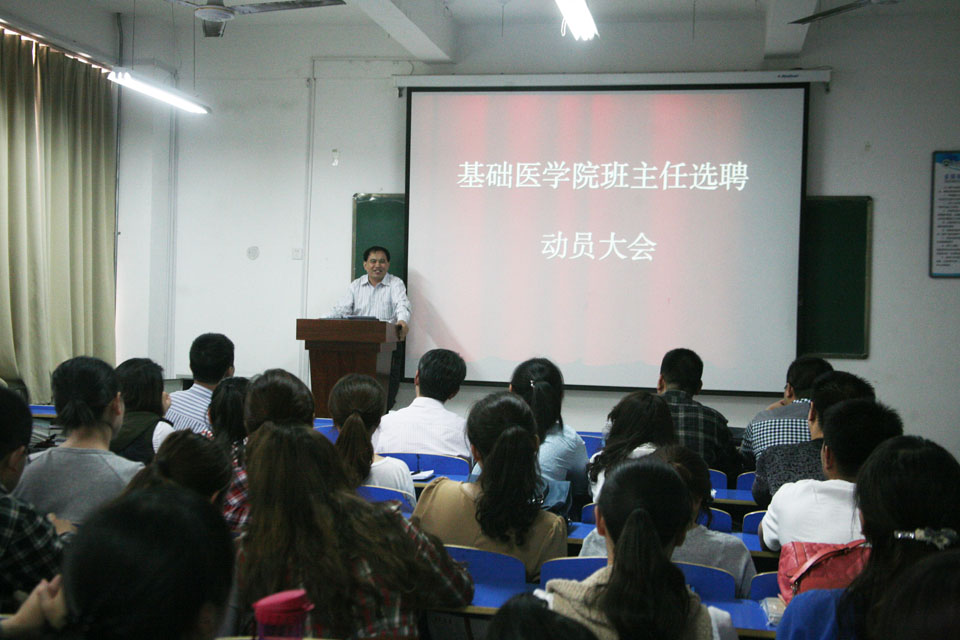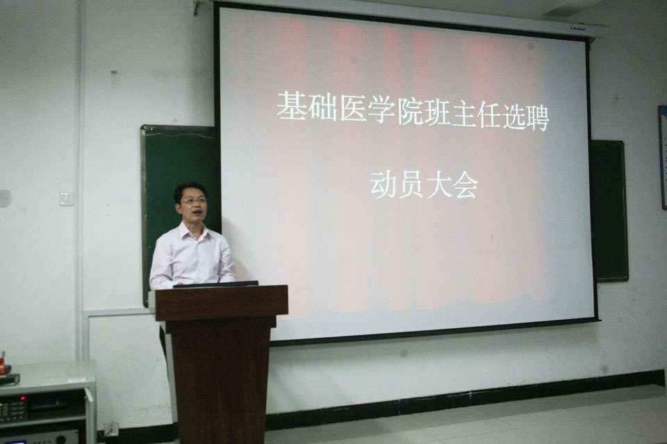 会上,王金文同志作重要讲话,他指出,学院高度重视兼职班主任选聘工作,基础医学院作为试点单位在我院率先启动,学院各级部门对本项工作会给与政策等方面的大力支持。班主任是开展大学思想政治教育的重要力量,是班级学风建设、学生学业教育与管理、职业生涯设计和指导的第一责任人,是促进学生牢固掌握专业知识和技能、圆满完成学业、成功择业就业的指导人和引路人。他勉励广大教职工积极投身兼职班主任工作,争做学生的良师益友,成为学院和学生之间联系的桥梁。同时,也通过参加兼职班主任工作,受锻炼与增长个人才干。