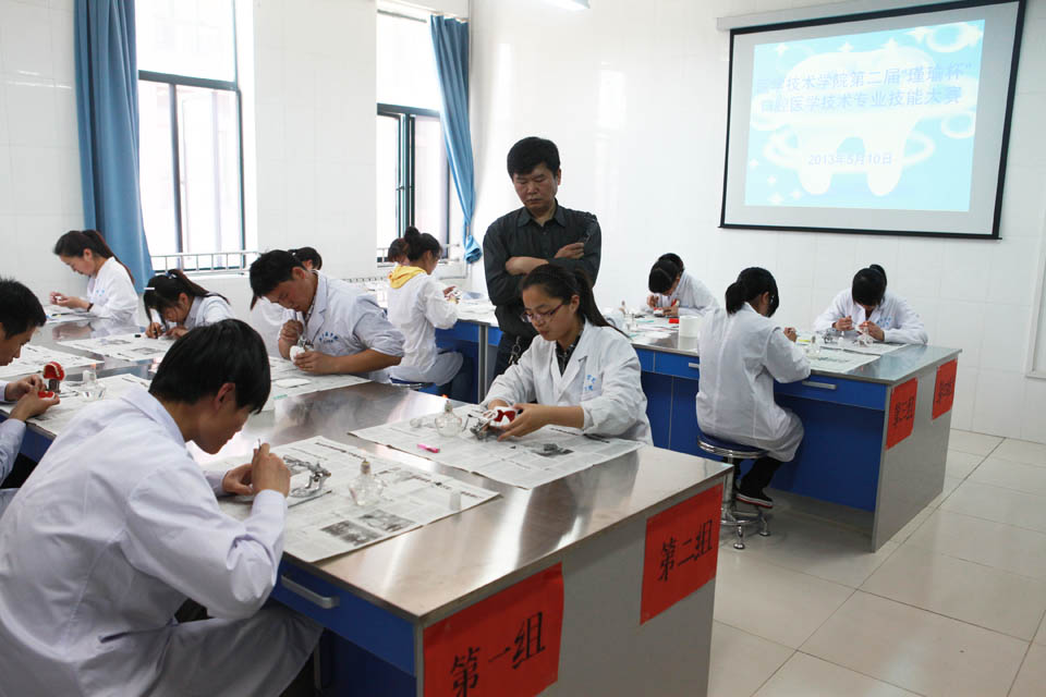 5月10日下午,由医学技术学院主办,医学技术学院口腔技术系承办的第二届“瑾瑜杯”口腔医学技术专业知识技能大赛在问学楼三楼口腔实验中心举行。新乡医学院第三附属医院口腔科主任王阳舒、副主任朱久育、教学秘书王冬梅担任本次比赛评委。全体口腔医学技术专业在校生观看了本次比赛。
