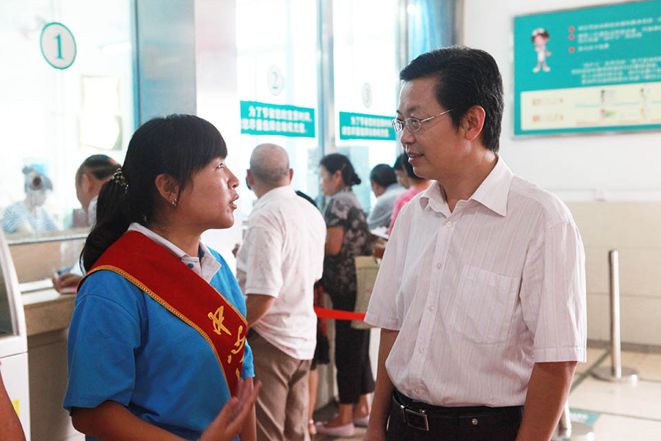 王培山高度赞扬了我院大学生体现出来的吃苦耐劳的精神和热心的服务态度。王金文代表学校感谢中心医院提供的良好的社会实践平台,强调青年大学生们一定要珍惜每次实践机会,在实践中发现问题,增长才干、服务社会。随后,王金文考察、慰问了现场服务的导医志愿者。