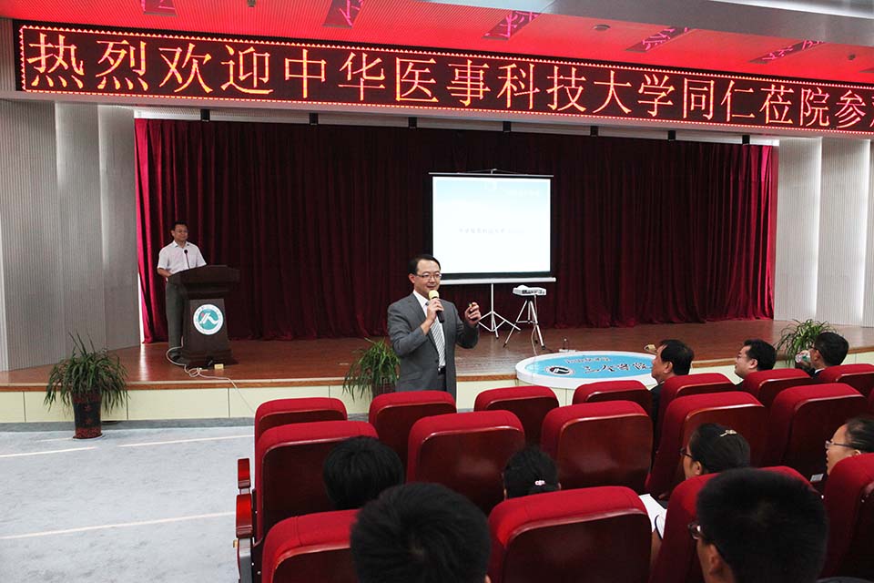杨捷代表我院对林金鹏一行的到来表示热烈欢迎,并从学院发展历史、机构设置、主要领导、职员研究、在校学生、合作交流、实践教学、荣誉等方面详细介绍了我院情况。林金鹏对到访我院表示十分荣幸,同时他从学院设置、课程设计、教师研究、在校学生等几方面介绍了台湾中华医事科技大学相关情况。