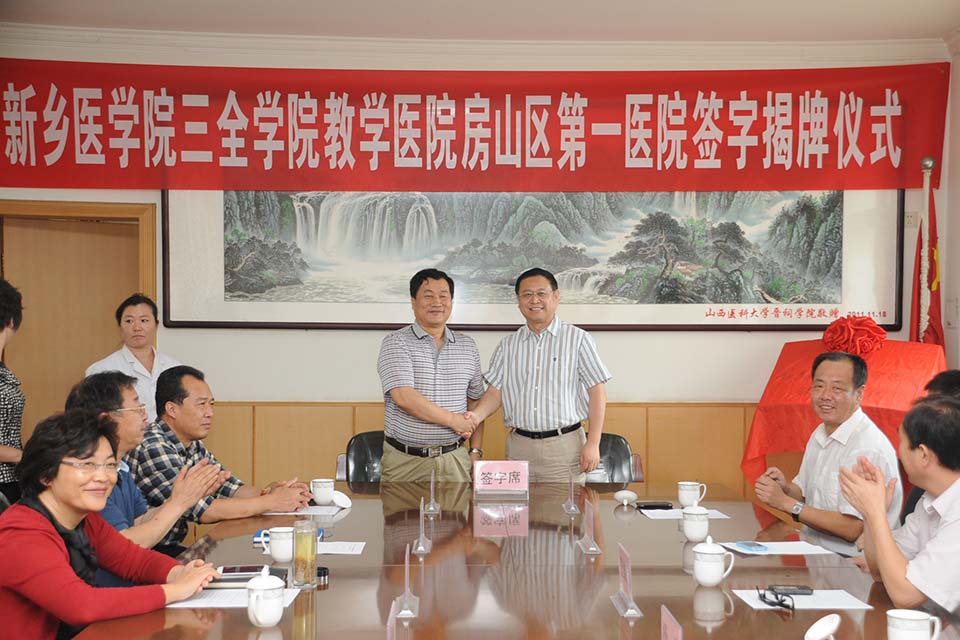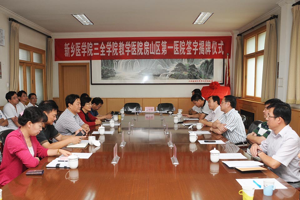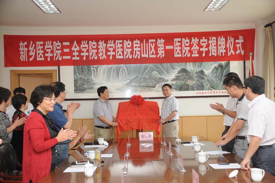 9月7日,院长杨捷,副院长、临床学院院长王维勋,教务部主任王洪兴,一同前往北京房山区第一医院参加“新乡医学院三全学院教学医院房山区第一医院”揭牌仪式。房山第一医院党委书记徐学玉、房山第一医院院长李景荣、房山第一医院各科室主任以及相关领导出席了本次仪式。