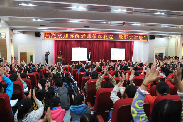 报告会由马素娟主持,首先,许红芝向参加讲座的大学生详细介绍了苏醒老师,并对苏醒老师的到来表示衷心的感谢和热烈的欢迎。接着,苏醒老师以一口标准、流利的英语一下子抓住了同学们的心,“奋斗”、“梦想”贯穿始尾,他用个人的经历讲述了如何迈出人生的第一步,用精心准备的视频告诉我们如何坚持做好每件事。整个讲座持续了两个小时,演讲现场掌声、欢笑此起彼伏,气氛异常热烈,苏醒老师的激情演讲催人奋进、震撼心灵,深深地感染和打动了在场的每一个人。