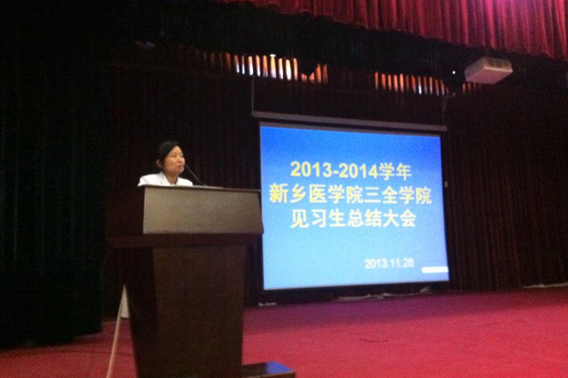 11月28日上午,我院在河南省人民医院科教大厦四楼多功能报告厅举行了临床专业学生见习总结大会。河南省人民医院教学科科长徐玉萍主持大会,河南省人民医院教学科戴玉雅、我院辅导员赵超建及2010级280名见习生参加了大会。