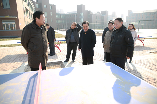 在校园察看时,郑书记听取了院领导对教职工公寓内部的布局、风雨操场名字由来和各种运动场地数量的详细介绍,他还详细询问了学校周围地理环境、内外部交通等问题。在学生公寓,郑书记视察了学生宿舍,听取相关负责人对于宿舍面积和硬件设施的介绍,他对宿舍条件表示满意。